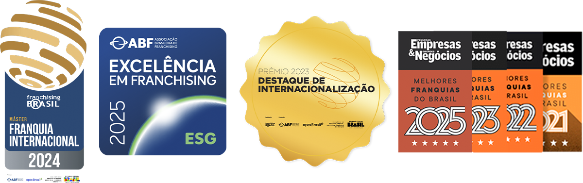 A franquia, com sede em Joinville-SC, é a única empresa do segmento à receber os dois maiores reconhecimentos do franchising nacional, o Selo de Excelência em Franchising (ABF) e o Prêmio 5 Estrelas da revista Pequenas Empresas Grandes Negócios, sendo uma das franquias com maior satisfação de franqueados de todo Brasil!